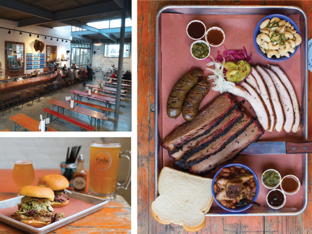 Srsic’s way of threading the treasure story into Beale’s food was to create a Texas-style barbeque menu. From meat to snacks to sides, Beale’s food reflects the Lone Star State. Srsic also created a barbeque market similar to those in an old-fashioned Texas meat market. At a large counter, customers order meats and sides by the half-pound or the pound, then watch as their meat is hand-carved and wrapped in classic Texas peach paper.