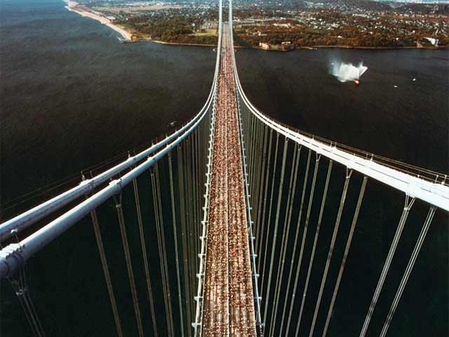 We waited and waited, nervousness clearly visible, and then, all of a sudden, we were off across the Verrazano Narrows Bridge toward Brooklyn. Pure exhilaration. Only 26 miles, 385 yards to go through all five boroughs.