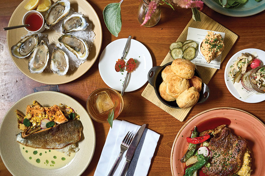 “With the menu, we take the best ingredients available and elevate them with solid techniques, allowing us to make approachable food that raises the bar on classic dishes,” shares Thomas. While some customer favorites like hanger steaks and oyster wraps are staples, most offerings are tailored to match what’s in season. This adds an extra layer of thrill for both repeat guests and the enthusiastic kitchen team, who loves working together to create exciting new offerings.