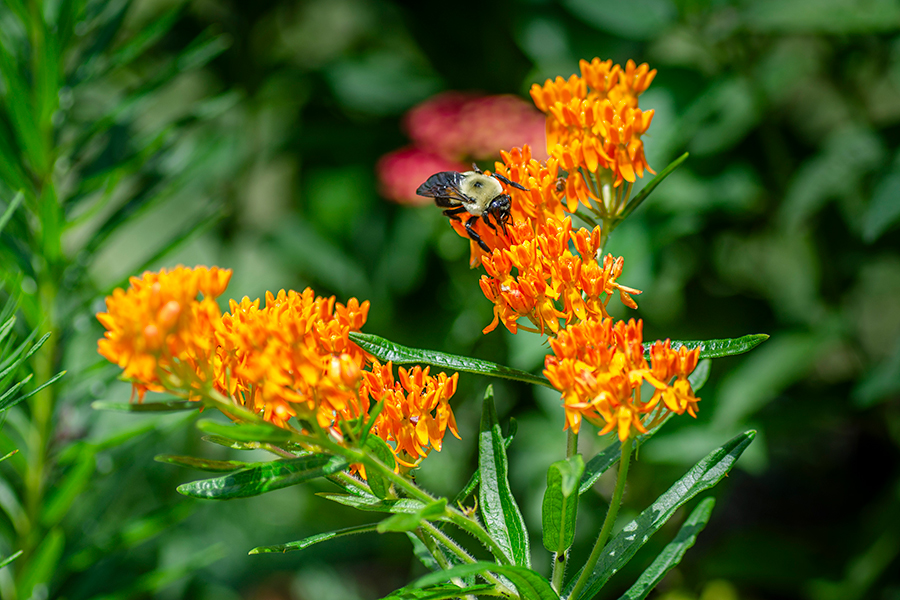 The Panagores always encourage integrating native species when possible because they “require the least amount of care, as they have evolved to thrive in our soil conditions and cope with our weather patterns and do not need our interference to succeed.” Some of their favorites include highbush blueberry, trumpet honeysuckle, wild columbine, purple passionflower, narrow-leaf mountain mint and catawba rhododendron. They also strongly advise against incorporating invasive species; English ivy, burning bush and maiden grass are a few of the most problematic in our area.