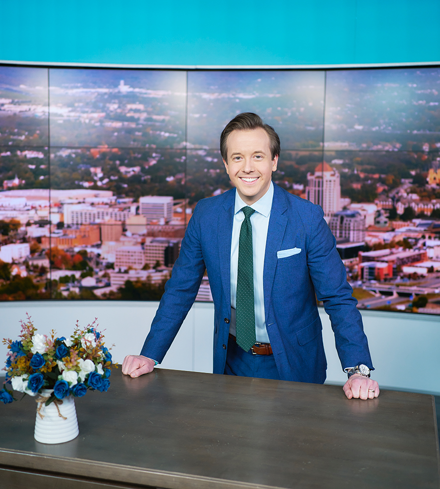 With 13 years in the news business, Sherrill has covered everything from major sporting events to devastating natural disasters to simple ribbon cuttings. While choosing a single career highlight is difficult, one story that stands out was his 2018 trip to Parris Island, South Carolina, for an inside look at Marine Corps boot camp. “I had always respected our military, but that experience took it to a new level, both physically and mentally,” he says. “Talking with families whose children went to boot camp and returned as Marines — their tears of joy, that sense of pride — it was incredible.”