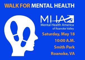 On May 18th Mental Health America of Roanoke Valley (MHARV) is hosting their 15th Annual Walk for Mental Health at Smith Park. MHARV is an organization that strives to change perceptions surrounding mental health, increase public knowledge of mental and physical wellness, offer resources for children and families, and provide access to quality mental health care.